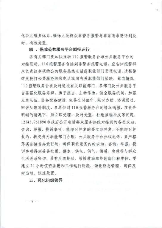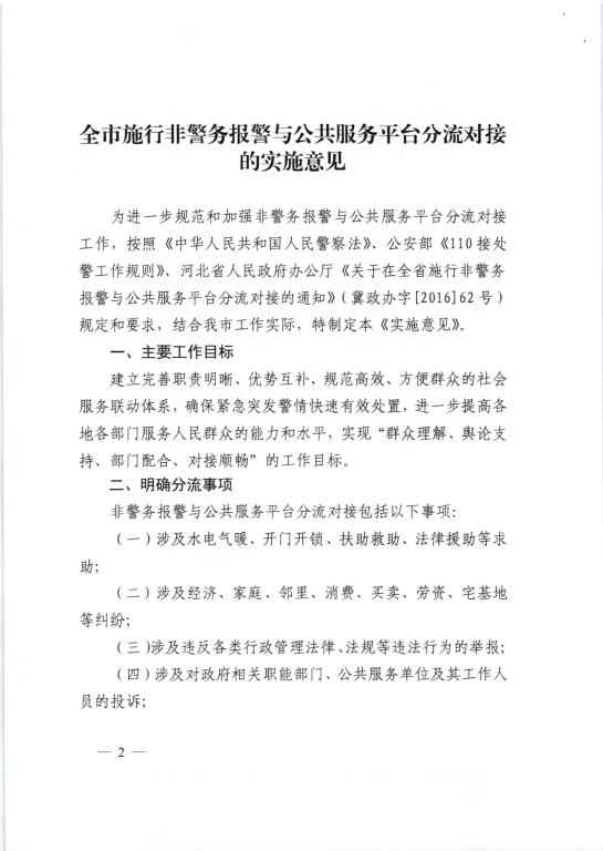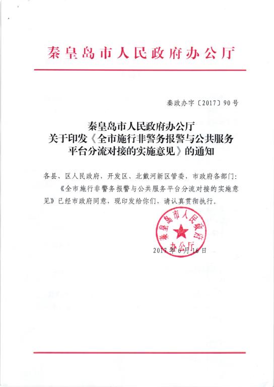 秦皇岛市人民政府办公厅关于印发《全市施行非警务报警与公共服务平台分流对接的实施意见》的通知