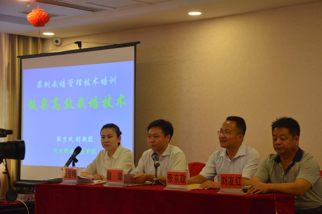 24日,张京政副教授在培训班上系统讲解了板栗高效栽培技术、苹果大树树形改造技术、苹果幼树早期丰产技术等方面的内容。