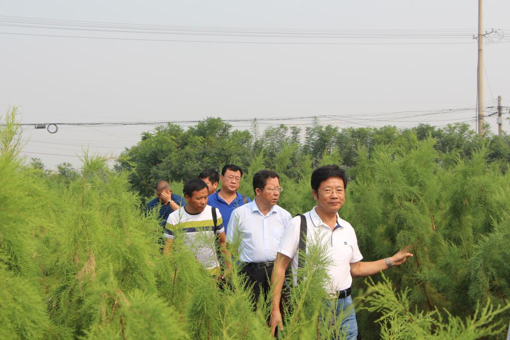 2017年9月8日上午,内蒙古包头市九原区政府副区长杜林春、林业局长王补德、农牧局长侯林、水务局长何继保、包头市“信步闲庭”农业观光企业老总周外军先生等一行5人来到昌黎校区,对园艺科技学院杨俊明教授科研团队选育的‘滨海翠’柽柳新品种进行了专题考察。