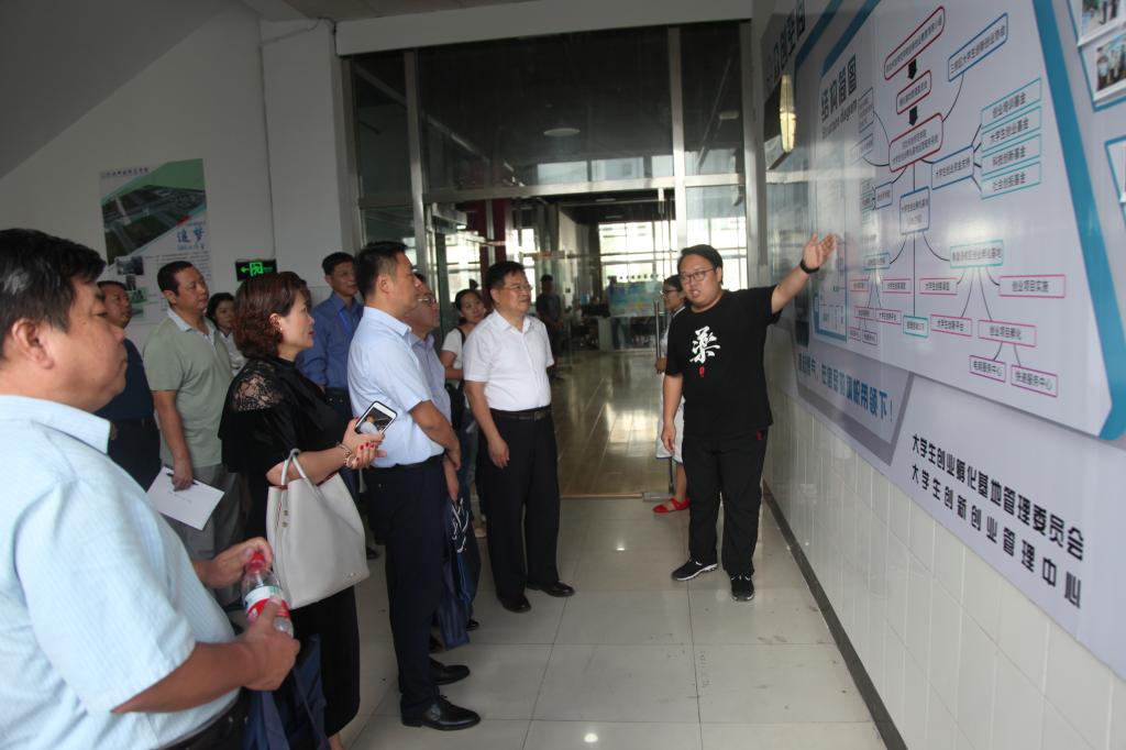 汇报会后,评估专家组一行在校领导和相关负责同志的陪同下,实地考察了我校大学生创新创业活动中心、经管实验实训中心、物流管理实验室、餐饮技能实验室、综合实训室、HR多功能行为观察室等校内实验实训场所和设施情况。参观了体育系应用型改革成果展。此外,专家组一行认真查阅了有关转型发展试点工作的支撑材料,全面了解我校转型试点的理论和实践成果。