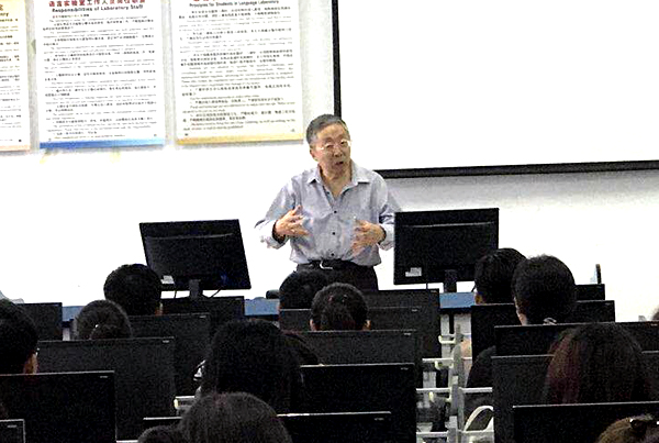 9月25日,外国语学院邀请我国西班牙语界泰斗陈凯先教授来我校做西班牙语学习专题讲座。陈凯先教授1966年毕业于北京外国语学院,曾任南京大学西班牙语系主任,塞万提斯中心主任,教育部外语教学指导委员会委员,1994年被聘为西班牙马德里自治大学名誉教授,现任南京大学金陵学院西班牙语专业主任,享受国务院政府特殊津贴。外国语学院西班牙语专业学生及教师参加了讲座。
