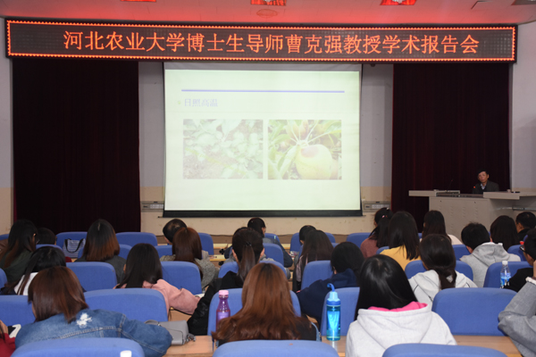 2017年10月17日,河北农业大学博士生导师,我国著名植物病害专家,国家现代农业产业技术体系(苹果病害)岗位科学家,病虫害防控研究室主任曹克强教授应邀来农学与生物科技学院作题为“苹果主要病虫害发生现状及防控策略”的学术报告。
