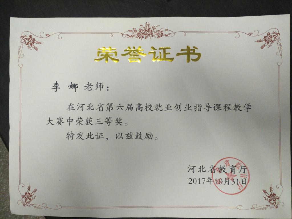 近日,“河北省第六届高校就业创业指导课程教学大赛”全省总决赛在燕山大学隆重举行,我校选派的数信学院李娜老师荣获大赛三等奖。