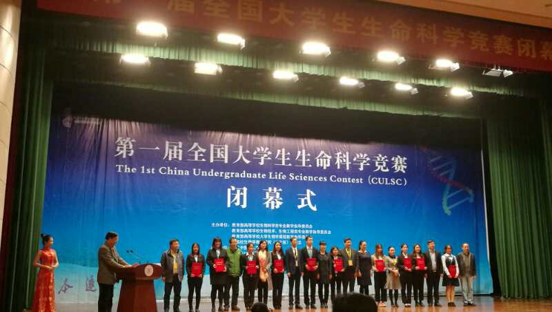 由教育部高等学校生物科学类专业教学指导委员会等四部门主办,浙江中医药大学承办的第一届全国大学生生命科学联赛决赛,于2017年11月3日至5日在杭州举行。由农学与生物科技学院乔亚科教授和硕士生张炜坤指导的三名本科生组成的代表队在激烈的竞争中脱颖而出荣获大赛二等奖。