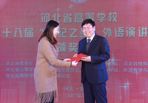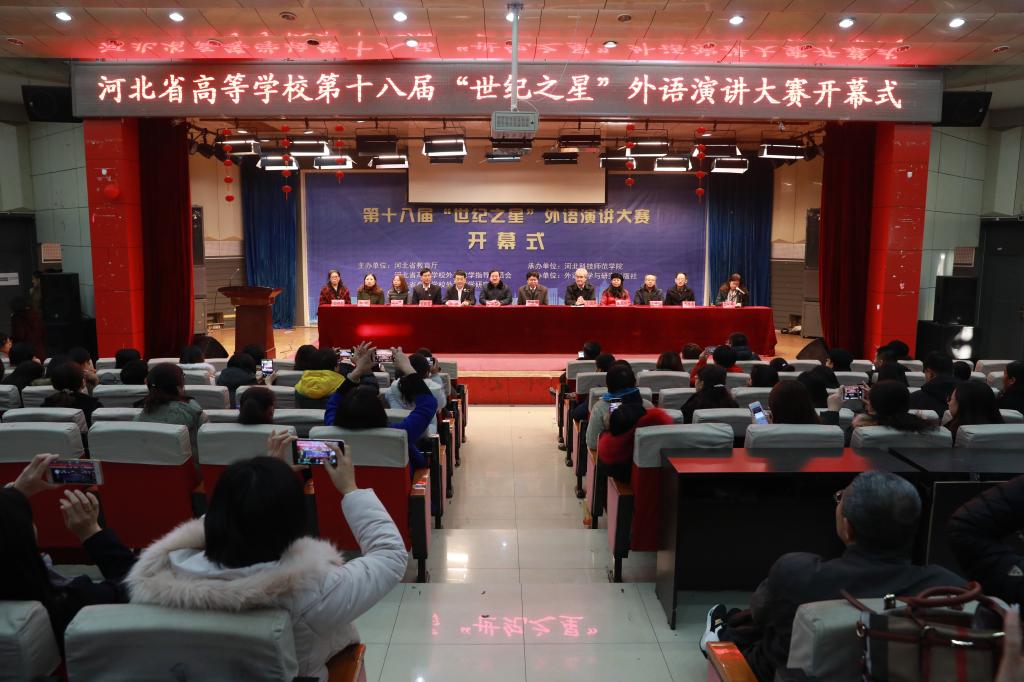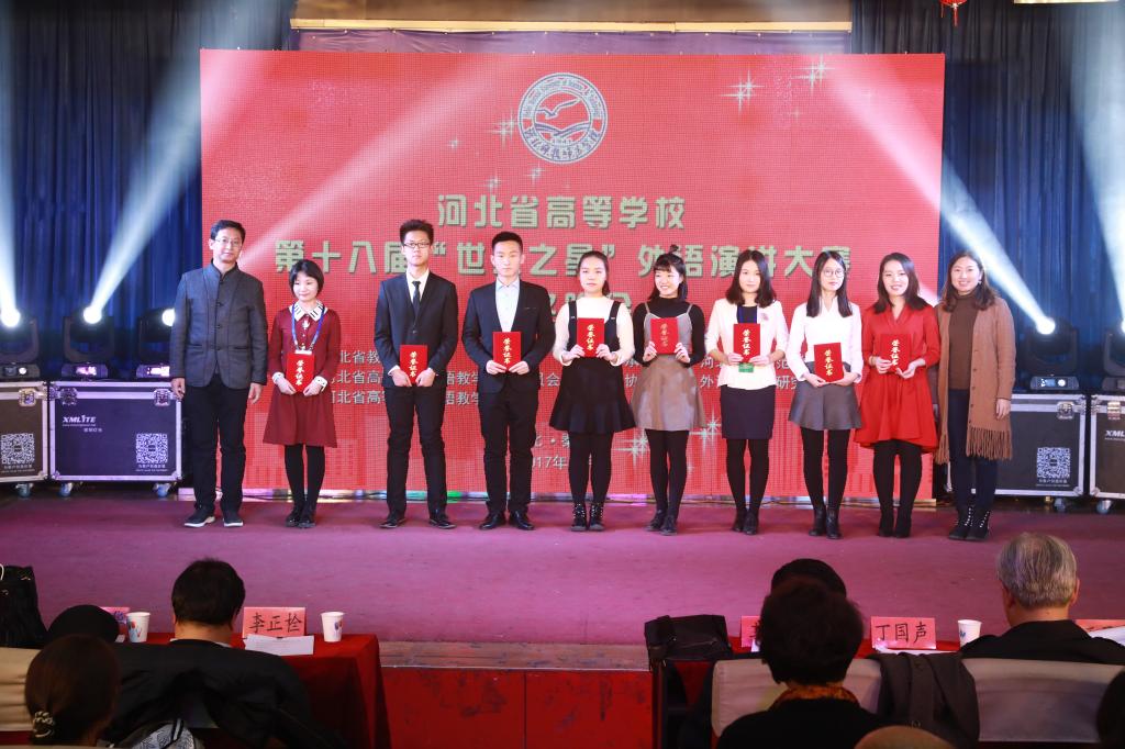 2017年11月18日,由河北省教育厅、河北省高等学校外语教学指导委员会主办的河北省高等学校第十八届“世纪之星”外语演讲大赛在我校开发区校区隆重举行。党委常委李佩国出席了大赛开幕式和颁奖晚会。来自全省102所高等学校的427名优秀选手参加了为期2天的激烈角逐。