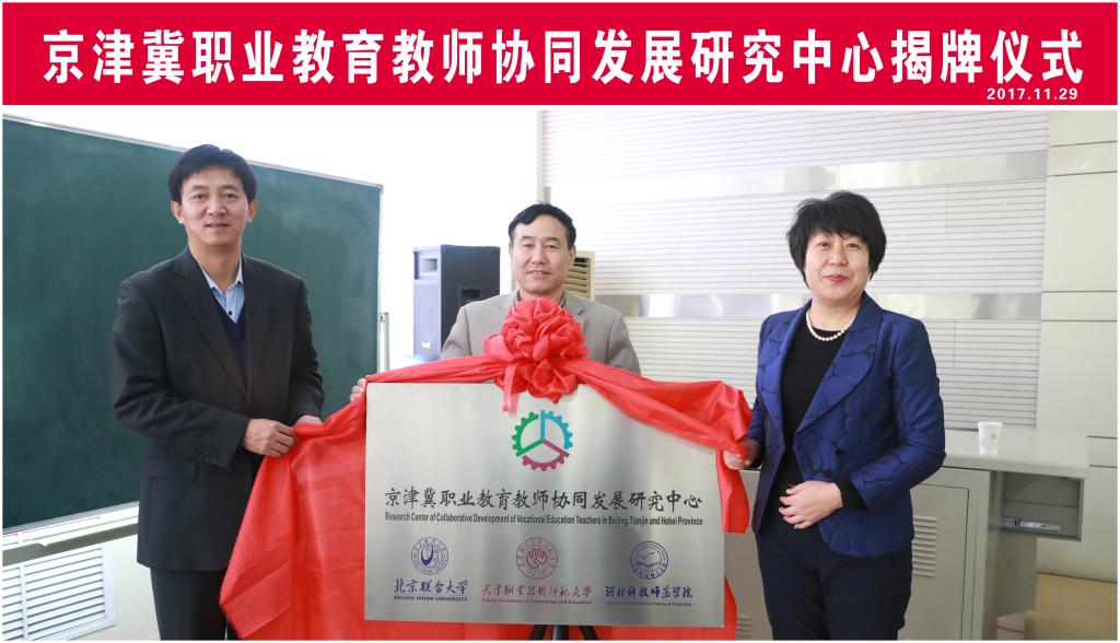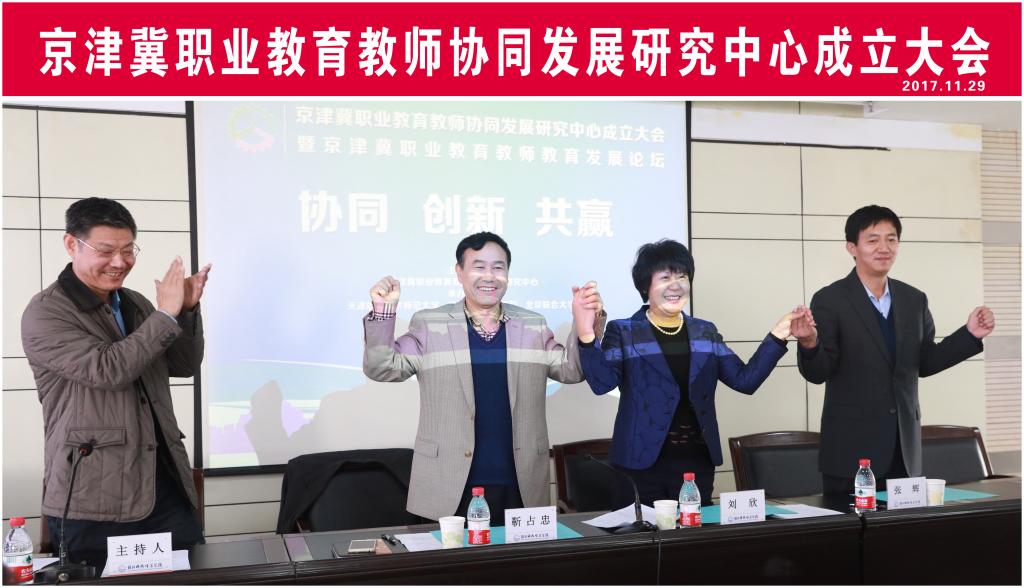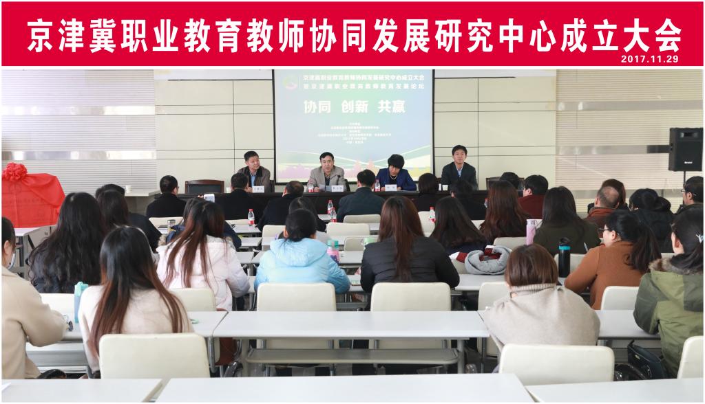 2017年11月29日,京津冀职业教育教师协同发展研究中心成立大会暨京津冀职业教育教师教育发展论坛在我校隆重举行。天津职业技术师范大学、北京联合大学和我校共3所京津冀职业教育师资培养高校的主要领导及相关部门负责人参加了会议。