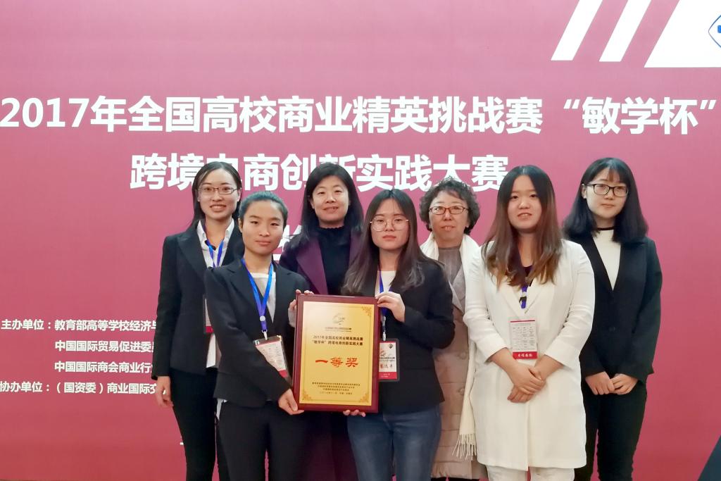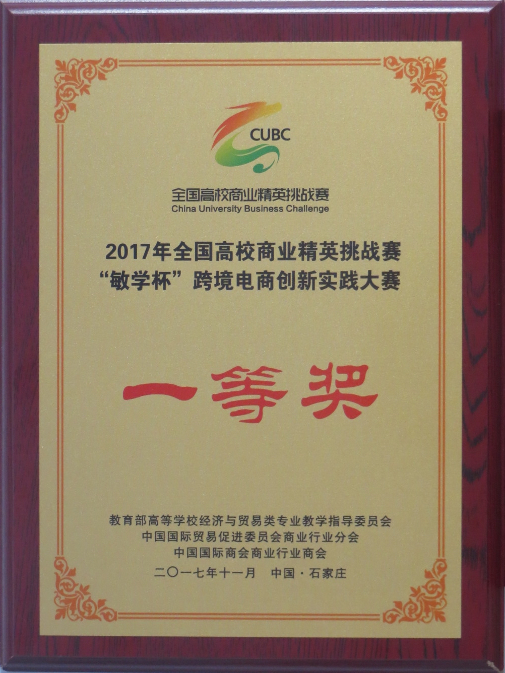 2017年11月25日至26日,由教育部高等学校经济与贸易类专业教学指导委员会、中国国际贸易促进委员会商业行业分会和中国国际商会商业行业商会共同主办,河北地质大学承办的2017年全国高校商业精英挑战赛“敏学杯”首届跨境电商创新实践大赛全国精英赛圆满落幕,我校财经学院参赛队获得一等奖。