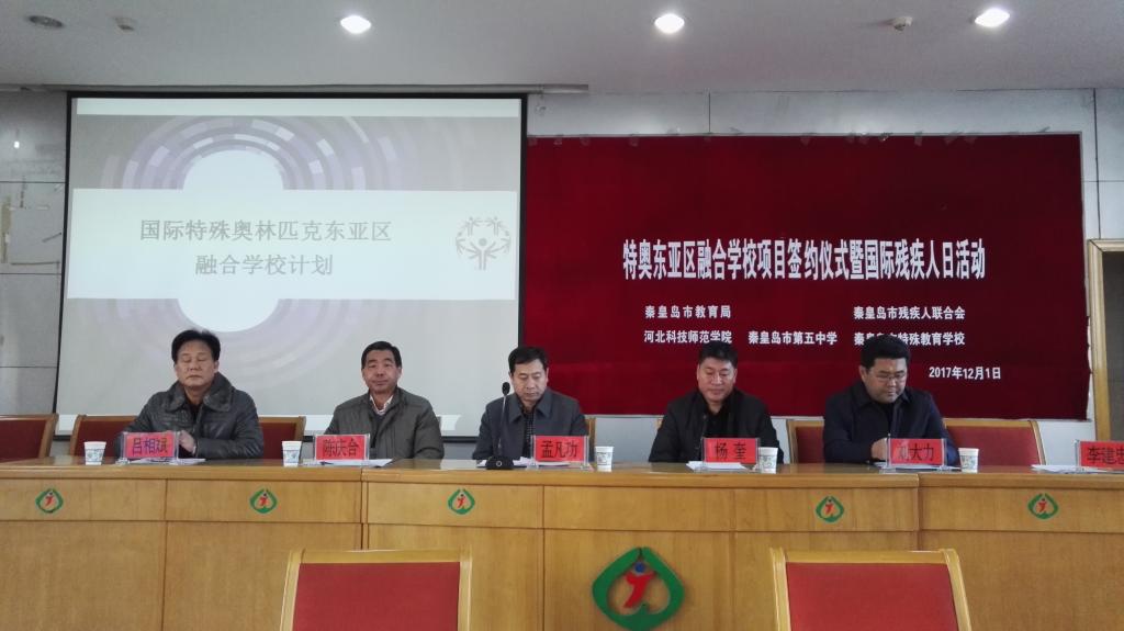 12月1日上午,我校体育系与秦皇岛市特殊教育学校就融合学校项目达成协议,共同签署了国际特殊奥林匹克东亚区融合学校合作备忘录,双方正式结成特奥融合学校。体育系行政负责人、学生工作负责人、部分教师和运动康复专业学生代表出席了签约仪式,并参加了随后进行的特奥融合活动。