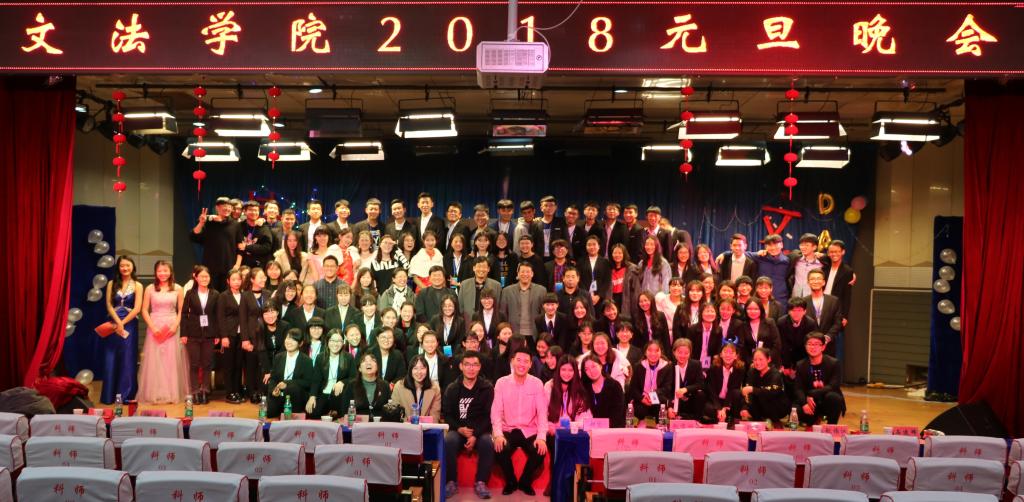 22日下午,文法学院2018年元旦晚会在开发区报告厅隆重举行。学院党政领导、各教学部主任、学工办老师与400多名学生欢聚一堂,共享盛宴,辞旧迎新。学院党委负责人登台致词,与师生们分享了文法学院在过去一年取得的进步,并向全体师生表示亲切的问候和美好的祝愿,希望大家在新的一年里继续秉持良好的校风、学风,开拓创新、与时俱进、不懈努力。整场表演形式多样,精彩纷呈,展示了当代大学生的青春梦想与激情。