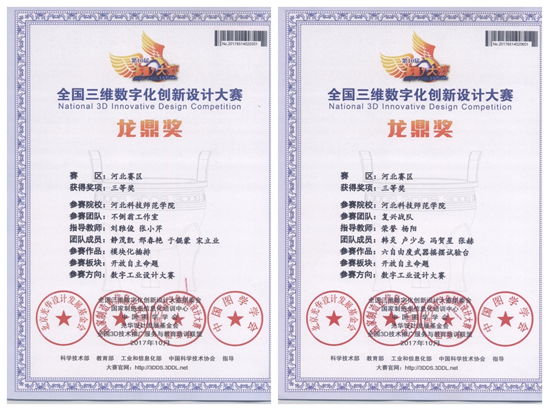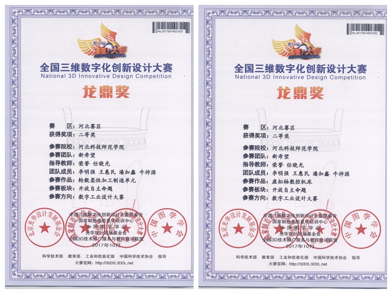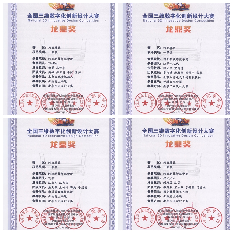 近日,全国三维数字化创新设计大赛组委会发布全国三维数字化创新设计大赛(简称“全国 3D 大赛”)成绩。我校机电工程学院喜获佳绩,共获得大赛(河北赛区)特等奖3项、一等奖4项、二等奖2项、三等奖2项。