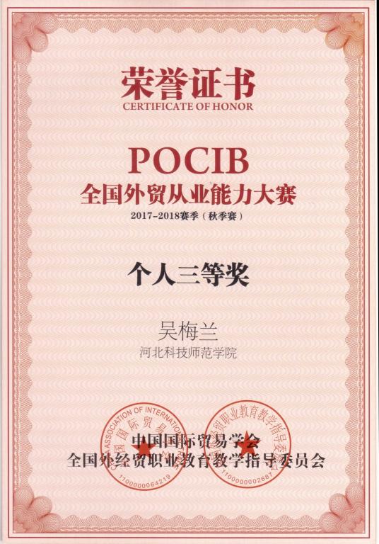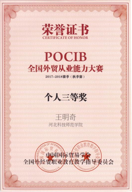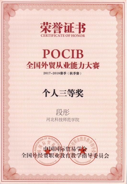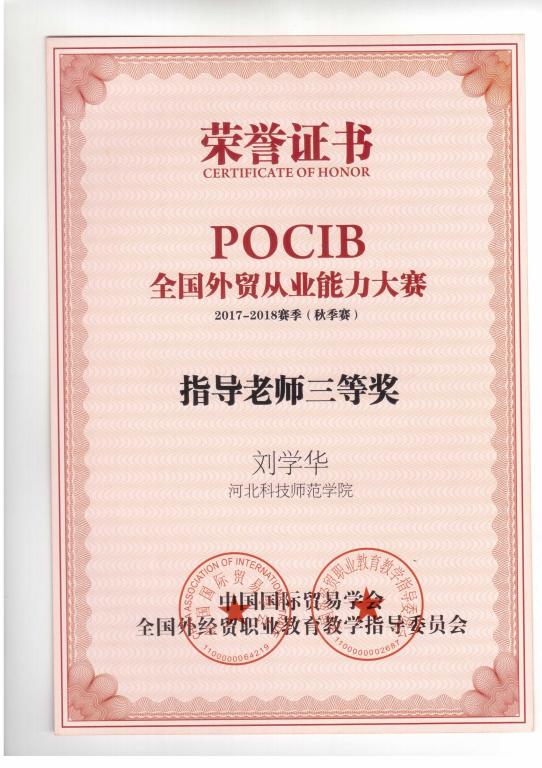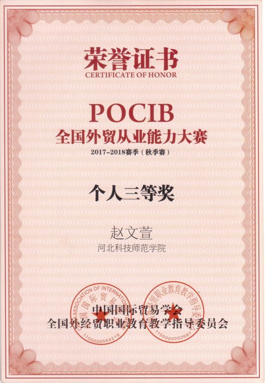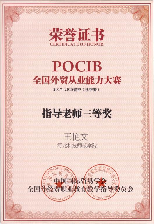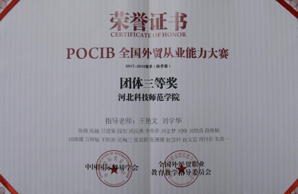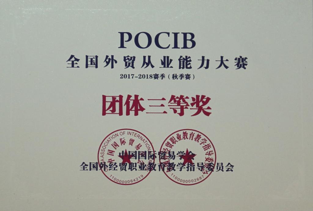2017年11月28日,由中国国际贸易学会、全国外经贸职业教育教学指导委员会共同主办的“第七届POCIB全国外贸从业能力大赛(秋季赛)”圆满落幕。经过20天的不懈拼搏,我校参赛团队获得本科组团体三等奖。