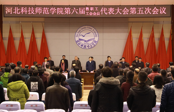 2018年3月11日上午8:20,我校六届五次教职工代表大会暨工会会员代表大会在雄壮的国歌声中隆重开幕。