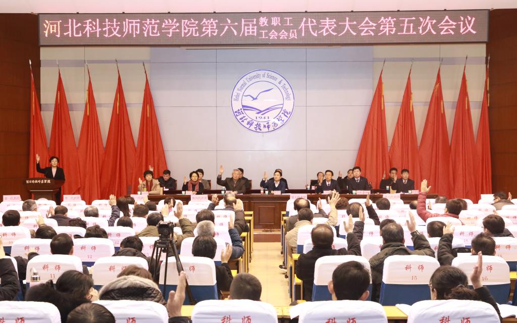 2018年3月11日下午,我校六届五次教职工代表大会暨工会会员代表大会历时一天,顺利完成各项议程,在秦皇岛校区学术交流中心胜利闭幕。