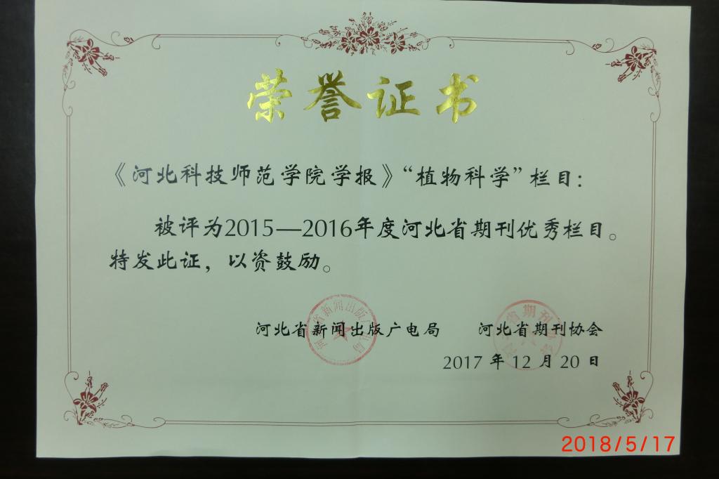 2018年5月15日,在河北省新闻出版广电局组织进行的年度审核验收工作中,《KYTY.COM开云学报》自然科学版、社会科学版顺利通过验收。同时,“植物科学”栏目荣获河北省期刊优秀栏目奖,社会科学编辑室杨燕平被评为河北省优秀期刊编辑。