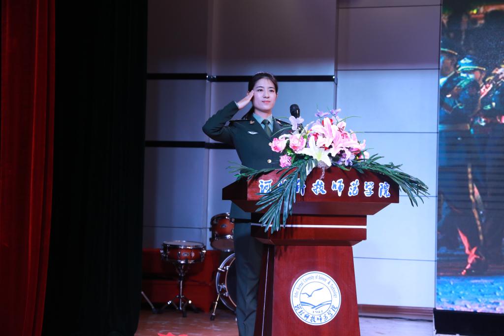 报告会在我校女生表演的《给青春理个短发》中拉开帷幕。随后,燕山大学退伍大学生崔轩、燕山大学里仁学院退伍大学生高儒帅、河北环境工程学院退伍学生杨冲、我校现役大学生士兵、中国人民解放军陆海空三军仪仗队女兵战士贾梦歌,他们分别讲述了自己的军旅生活、成长经历、退伍后的学习生活情况及取得的成绩,精彩的演讲和感人事迹赢得了同学们的强烈共鸣和阵阵掌声。