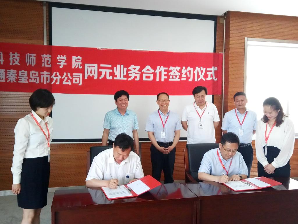 近日,我校与中国联通秦皇岛分公司签订网元合作协议。校党委常委李佩国和中国联通秦皇岛分公司总经理刘洪峰出席了协议签字仪式。