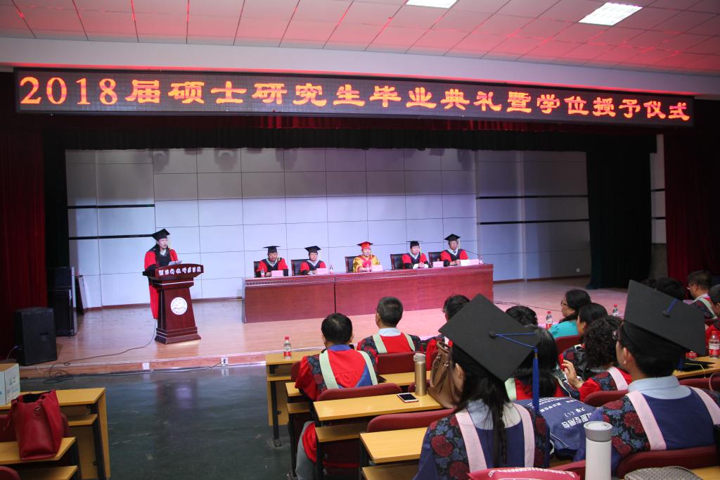 2018年6月14日下午,我校在秦皇岛校区隆重举行2018届硕士研究生毕业典礼暨学位授予仪式。校学位评定委员会主席、党委书记靳占忠教授,副主席、党委常委李佩国教授,副主席、副校长杨越冬教授出席了典礼。全体毕业研究生,研究生导师,各培养单位负责人、研究生秘书,研究生部教师及部分来宾参加了典礼。典礼由研究生部负责同志主持。