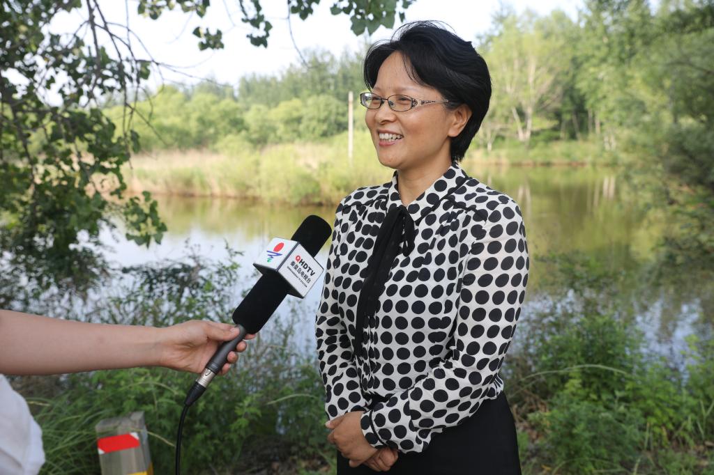 副校长杨越冬在戴河湿地公园接受秦皇岛电视台记者采访