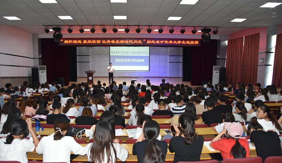 2018年6月29日下午,我校在秦皇岛校区举办“胸怀感恩,报效祖国,让青春在新时代闪光”励志成才优秀大学生选拔赛。学校党委宣传部、党委学工部、学生处、团委主要负责人等担任评委,教师和学生代表近300人到场观看了选拔赛。