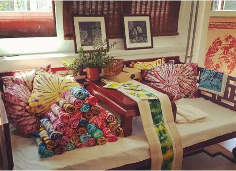 在老师们的无私传授下,学生利用所学知识将扎染作品变为文创产品,设计的围巾、桌旗、背包、服装等旅游产品深受游客的喜爱。并且发挥艺术设计专业的特长,自主研发了产品的标志、包装等,有效的推动了品牌文化的传播。学生在实践中学到了就业和创业技能,大大激发了学生们的创作热情。