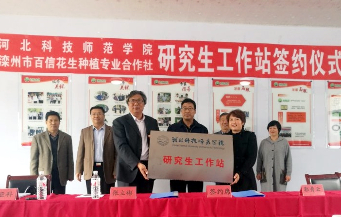2018年10月16日,我校研究生部、财经学院、农学与生物科技学院相关领导一行6人赶赴滦州市,与滦州市市委组织部、滦州市农牧局、滦州市百信花生种植专业合作社洽谈合作事宜,与滦州市百信花生种植专业合作社签署了研究生工作站协议并举行了授牌仪式。