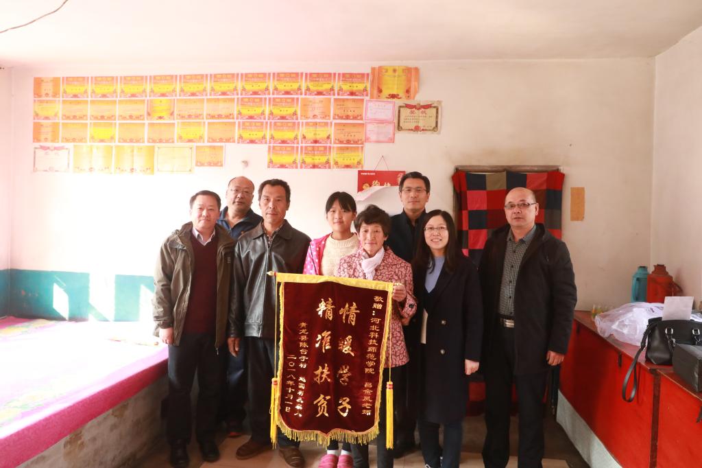 2018年11月3日,青龙陈台子村贫困户赵国利一家人,向我校结对帮扶责任人数信学院吕金凤老师赠送一面写有“情暖学子 精准扶贫”的锦旗。他们正在上初中的女儿赵冰雪给吕金凤老师写了一封情真意切的感谢信,一家人真心表达对吕金凤老师三年来对他们真情暖心扶贫助学的感激之情。我校驻陈台子村工作组组长、第一支部书记王伟,数信学院领导参加了赠送锦旗仪式。(编辑:赵辉 审核:唐代清)