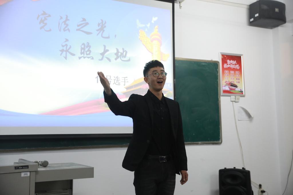 参赛选手们沉着自信,侃侃而谈,围绕自身经历和时政热点,从宪法与国家、宪法与社会、宪法与个人等方面,讲宪法故事、谈宪法认识、论宪法精神,阐释了对宪法的深刻理解,表达了对宪法的热爱赞美之情。经过角逐,张韬同学荣获第一名,并将代表学院参加学校比赛。(编辑:孙艳敏 审核:唐代清)