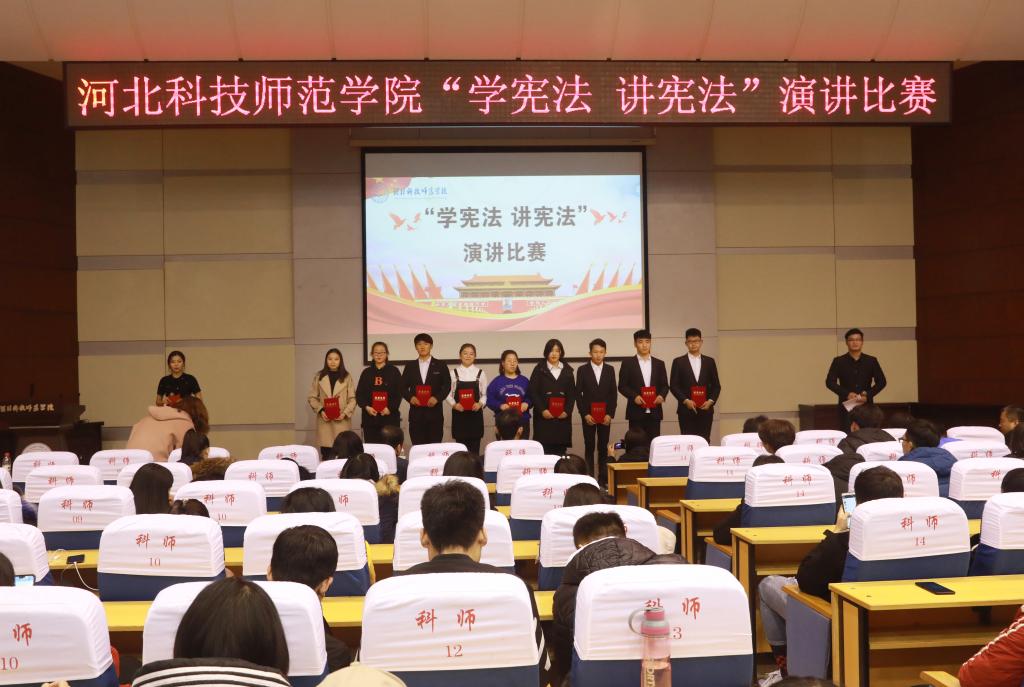 2018年11月28日,我校“学宪法 讲宪法”演讲比赛在秦皇岛校区隆重举行。学校党委宣传部、纪委办、党委学工部、学生处、团委、工会、法制办等主要负责同志出席比赛,同时担任了大赛评委。全校各二级院(系、部)经过层层选拔,分别推选了17名优秀选手参加了比赛。秦皇岛校区的400余名大学生到比赛场观摩了比赛。