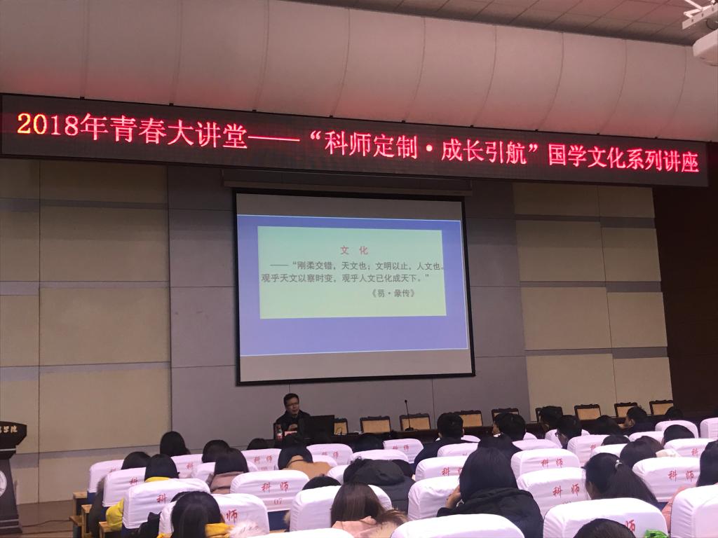 按照我校2018年“青春大讲堂—科师定制˙成长引航”活动的总体安排,11月,校团委举办了以“国学文化”为主题的系列讲座活动。