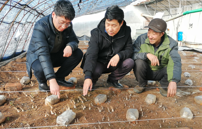 1月18日,农学与生物科技学院贠小波、乔亚科、侯东军三位专家来到青龙苏杖子村,对该院“三区”科技特派员孙伟明博士全程技术指导的羊肚菌高产栽培基地进行实地调研,并对我校帮扶村----青龙镇龙潭村食用菌栽培基地实地考察指导生产。