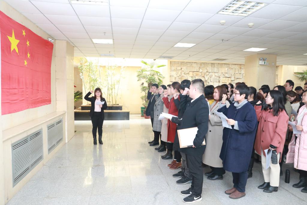 最后,新引进人员在图书馆一楼大厅举行了入职宣誓仪式,宣誓仪式由2017年学校引进的B类拔尖人才张海华博士领誓,并参观了校史馆。