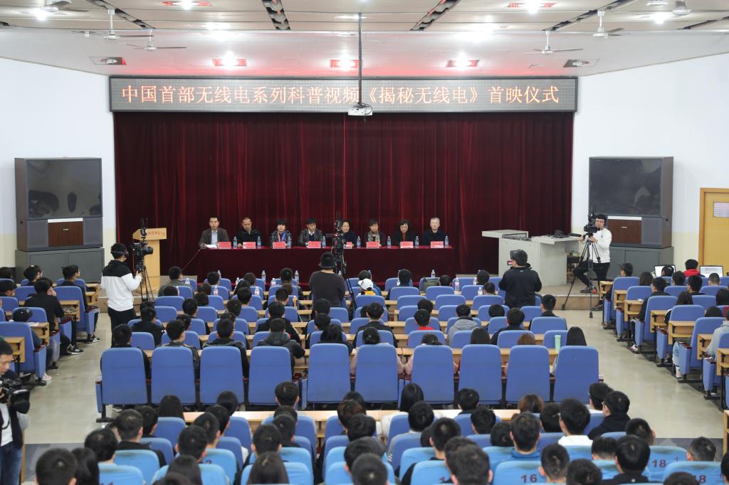 3月28日下午,全国首部无线电系列科普视频《揭秘无线电》首映仪式在我校昌黎校区学术报告厅举行。我校副校长杨越冬、秦皇岛无线电管理局长栗威出席了首映式。学校科研处领导、机电工程学院领导班子成员、部分师生、秦皇岛无线电管理局全体员工、节目主创团队近600人参加了首映式,并共同观看了视频节目。首映结束后,项目主创团队与观众进行了交流答疑,以此揭开了节目全剧集整体上线发布的序幕。首映全程进行了网络直播。