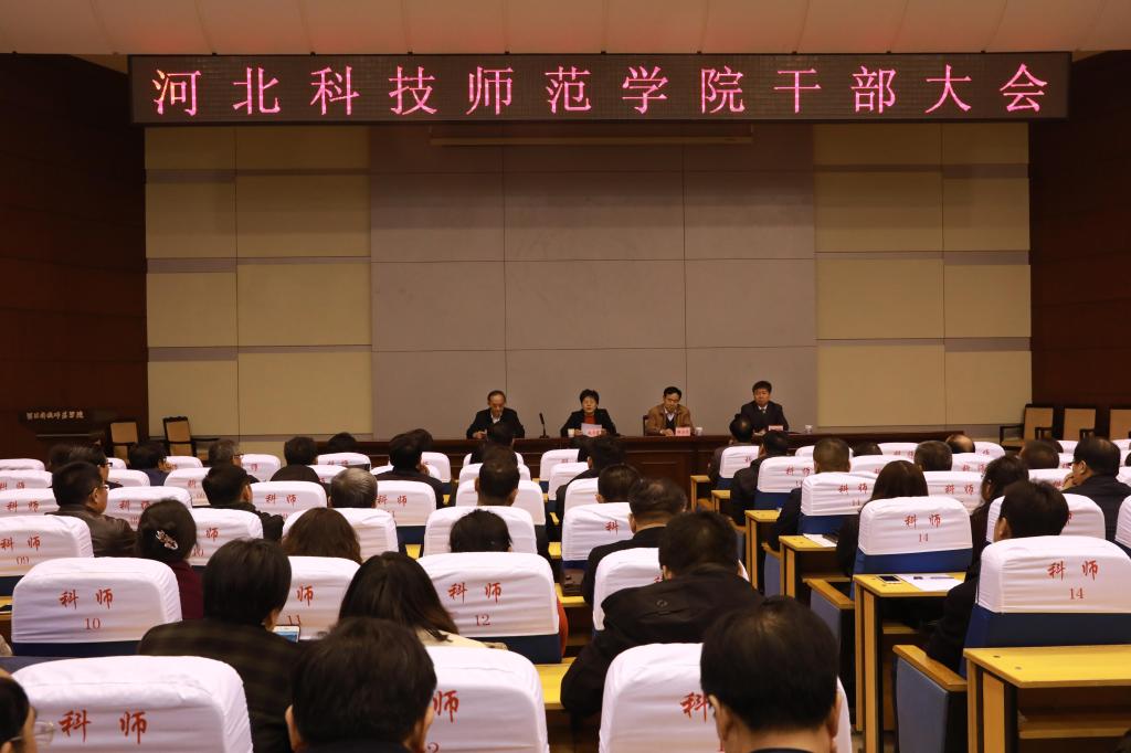 2019年4月2日上午,我校在秦皇岛校区学术交流中心召开大会,宣布河北省委关于我校主要领导同志调整的决定。省委组织部副部长、老干部局局长赵月霞,省委组织部干部五处处长薛冰山,省委教育工委组干处处长霍丙泉等同志出席会议。