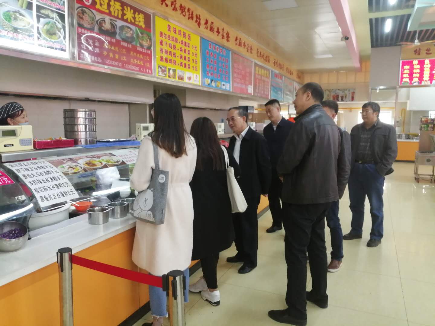 任民书记一行深入学生食堂,首先查看了食堂公示栏、食堂环境卫生情况,详细了解食堂就餐座位数、食品进货渠道、对食品安全规章制度的落实、食堂餐饮服务许可证、食堂从业人员健康管理、食品生产加工环节、操作间硬件设施、食品安全知识宣传教育,以及学校食堂食物安全事故应急预案等情况。在调研检查中亲切地与就餐学生及食堂工作人员进行面对面交流,掌握了学校食堂第一手资料。同时,任民书记一行又深入超市、开水房等地进行了实地检查,并对其中涉及相关安全问题进行了深入了解。