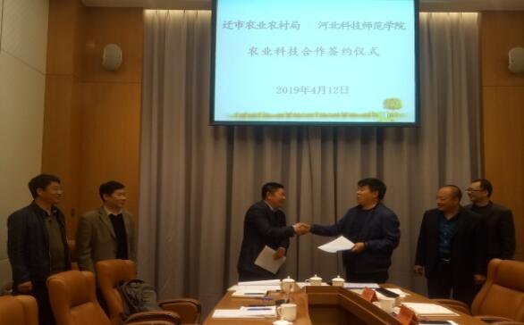 2019年4月12日,农学与生物科技学院有关领导、专家等一行五人到迁安市与市农业农村局签署了《农业科技合作框架协议》。