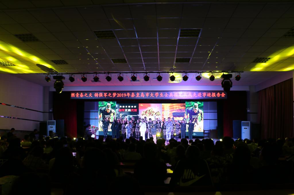 为深入贯彻习近平强军思想,落实省政府、省军区关于征兵宣传“进校园”有关要求,5月13日,由秦皇岛军分区主办,海港区人民武装部承办的“燃青春之火 铸强军之梦2019年秦皇岛市大学生士兵携笔从戎先进事迹报告会”在我校秦皇岛校区多功能厅举行。秦皇岛市军分区征兵动员处处长吴云中,海港区人民武装部政委仇学东,我校武装部、学生处、秦皇岛校区二级学院的有关负责人及300余学生代表参加了报告会。校武装部负责人代表学校在报告会上致辞。