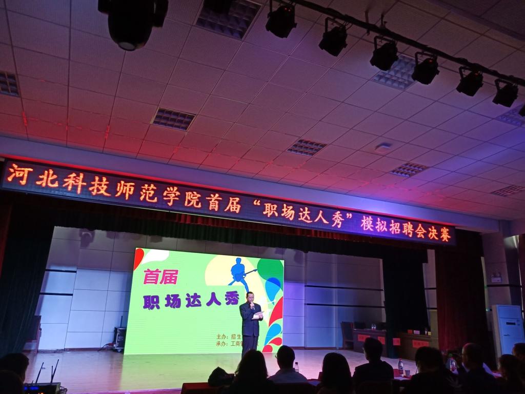 2019年5月15日下午2点30分,由学校招生就业处主办,工商管理学院承办的首届职场模拟招聘活动“职场达人秀”决赛在秦皇岛校区多功能厅举办。活动邀请到校外优质用人单位及学校相关部门主管领导担任评委,活动吸引到近300人到场参观。