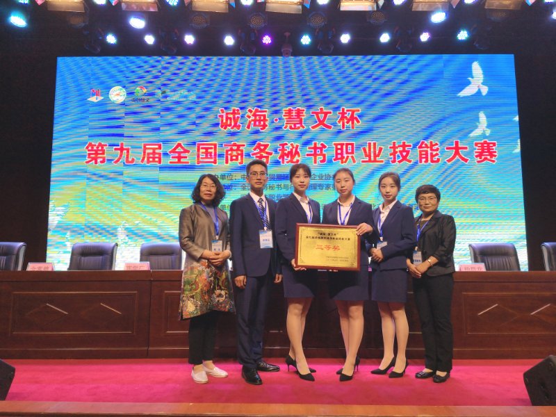 2019年5月17日至19日,我校文法学院16级秘书学的赵志莹、张洁及17级秘书学的邢紫璇、张洪滔四名同学,在“诚海·慧文杯”第九届全国商务秘书职业技能大赛中,取得团体三等奖的优异成绩;在秘书单项奖中,邢紫璇同学荣获三等奖,同时,韩国春和郑雅君两位指导老师被评为优秀指导老师。