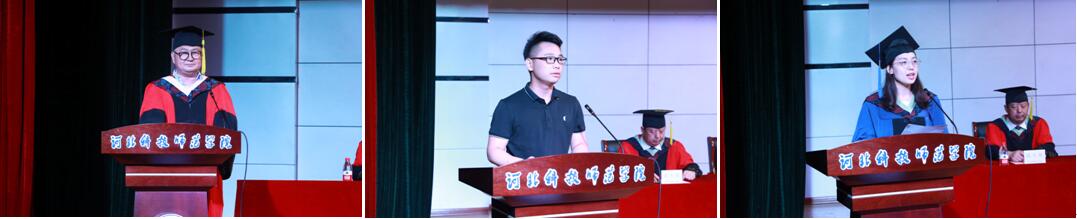 毕业典礼上,教师代表、毕业生代表、在校生代表分别发言。