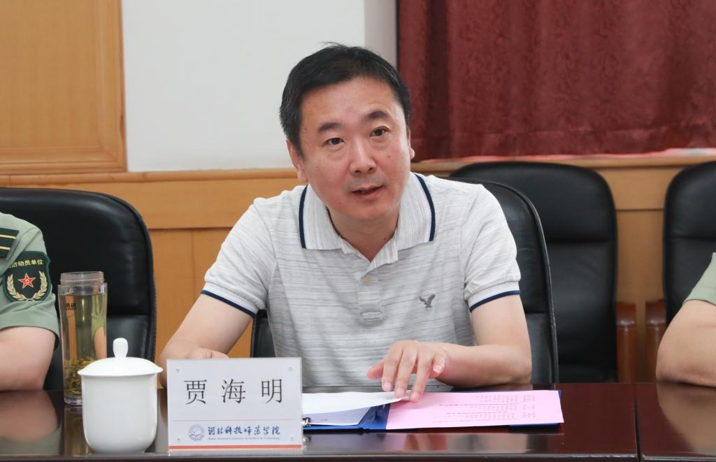 省教育厅副厅长贾海明就我校师范类教育工作进行了指导,并重点在如何打造学校军营文化、提升学生国防意识、做好征兵宣传、军民共建、培养优良的学业职业习惯等方面讲了意见。