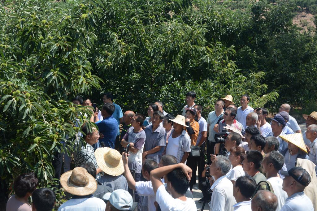 张京政副教授主讲了板栗省力化高效修剪技术特别是夏季管理技术,王同坤教授总结强调了板栗省力修剪的关键技术环节和应注意的问题,随后带领栗农们参观、观摩了采用新技术的板栗丰产园。