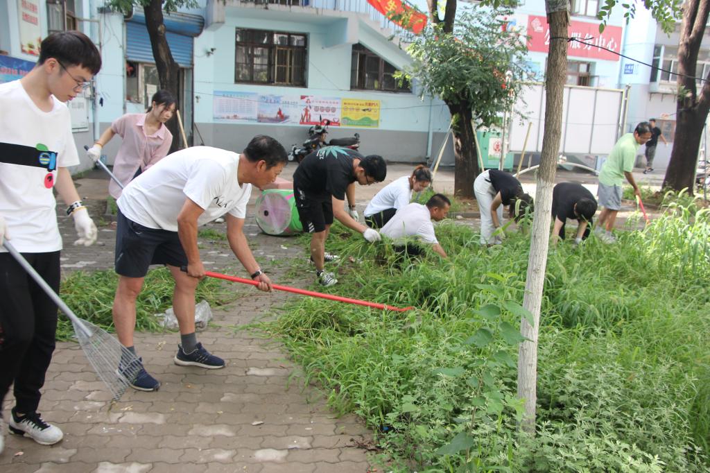 8月3日(周六)上午,为响应秦皇岛市文明办关于开展旅游旺季志愿服务集中行动的号召,我校秦皇岛校区、开发区校区各院系、图书馆、后勤与国有资产馆理处、大学生服务中心等单位的师生党员志愿者三十余人,到文耀里社区开展志愿服务活动。在社区工作人员的带领下,志愿者们拔除了小区宣传栏及活动区域的杂草,并清理了小区内的垃圾及卫生死角。