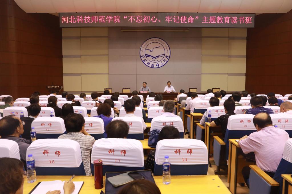 校党委常委李佩国主持会议时强调,结合学校各项工作实际,要把开展主题教育同全面贯彻党的教育方针,坚持社会主义办学方向,坚持立德树人,坚持“四个服务”,着力培养德智体美劳全面发展的社会主义建设者和接班人紧密结合起来;把开展主题教育与加强党对高校的全面领导,坚持和完善党委领导下的校长负责制,落实意识形态工作责任制,加强和改进高校思想政治工作和思政课建设,健全全员全过程全方位育人的体制机制紧密结合起来; 把开展主题教育与严格办学治校,深化教育教学改革,加快应用型大学建设,全面提高人才培养能力、推动高等教育内涵式发展紧密结合起来;把开展主题教育与健全学校党委、院系党组织、基层党支部、党员“四位一体”党建工作体系,夯实基层基础,全面提升学校党建工作质量紧密结合起来。以主题教育推进促进学校各项事业发展,推进促进“三三二三”战略的实施。不忘初心跟党走,牢记使命育人才,为开创新时代全面建设经济强省、美丽河北新局面,为学校事业持续健康发展,加快建设特色鲜明高水平应用型大学,勇往直前,奋勇前进!