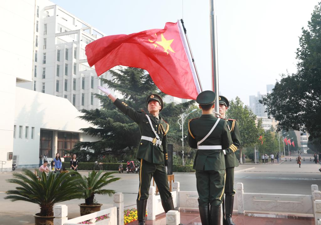 为庆祝新中国成立70周年,激励全校师生的爱国情怀。10月1日,我校在秦皇岛校区隆重举行“庆祝中华人民共和国成立70周年”升旗仪式。早上8:15,伴随着雄壮的国歌声,展旗手将五星红旗抛向天空,全体师生肃穆而立满怀崇敬之情向国旗行注目礼,深情凝望国旗,同唱国歌,送上了对伟大祖国最诚挚的祝福。在振奋人心的国歌声中,鲜艳的五星红旗冉冉升起,迎风飘扬。