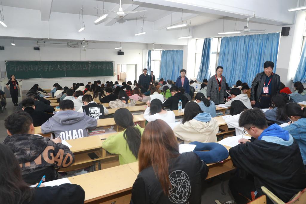 按照省司法厅、省教育厅和省法治宣传教育领导小组办公室联合下发的文件精神,为在全校广大青年中积极开展宪法法律宣传教育系列活动,掀起宪法和法律知识的学习热潮,2019年10月17日,我校在秦皇岛校区举办了大学生宪法法律知识考试。秦皇岛校区各二级教学单位共选派220名优秀选手参加了本次考试。秦皇岛市司法局副调研员田茂来、普法与依法治理处处长张彬彬、副主任科员杨立强来校巡考。学校党委宣传部负责同志分考场陪同巡考。