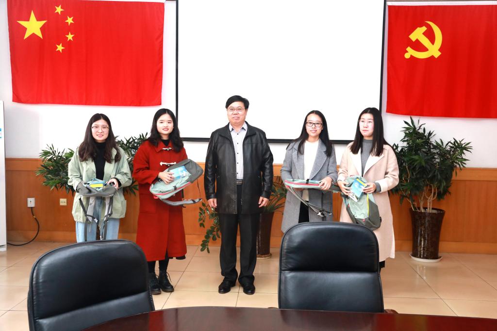 郭鸿湧介绍了我校办学历史,详细解读了学校转型发展、筹建特色鲜明高水平应用型大学的“三三二三”战略,介绍了学校研究生教育发展及招生专业设置情况。刘建军首先感谢我校在硕士研究生联合培养方面提供的帮助,介绍了石家庄学院的校史、现状和发展规划;冯宝强向联合培养研究生赠送了学习用品;研究生工作办公室主任高振环介绍了联合培养硕士研究生的优惠政策;学科教学英语专业的研究生杨琳代表联合培养的研究生作了发言;四名联合培养的研究生与各自导师进行了交流。