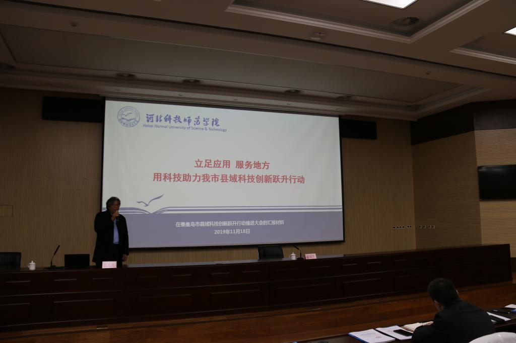 11月18日,秦皇岛市召开县域科技创新跃升行动推进会议,对全市县域科技创新跃升行动进行安排部署。会议由市委书记孟祥伟主持。省科技厅厅长马宇骏应邀以《伟大的使命 共同的责任》为题,为全体与会人员作专题报告。市长张瑞书对全市县域科技创新跃升行动进行安排部署,并对我校服务“县域科技创新跃升行动”的工作给予充分肯定;副市长杨铁林宣读了秦皇岛市《县域科技创新跃升行动计划(2019-2025年)》。我校党委副书记、校长郭鸿湧参加会议。