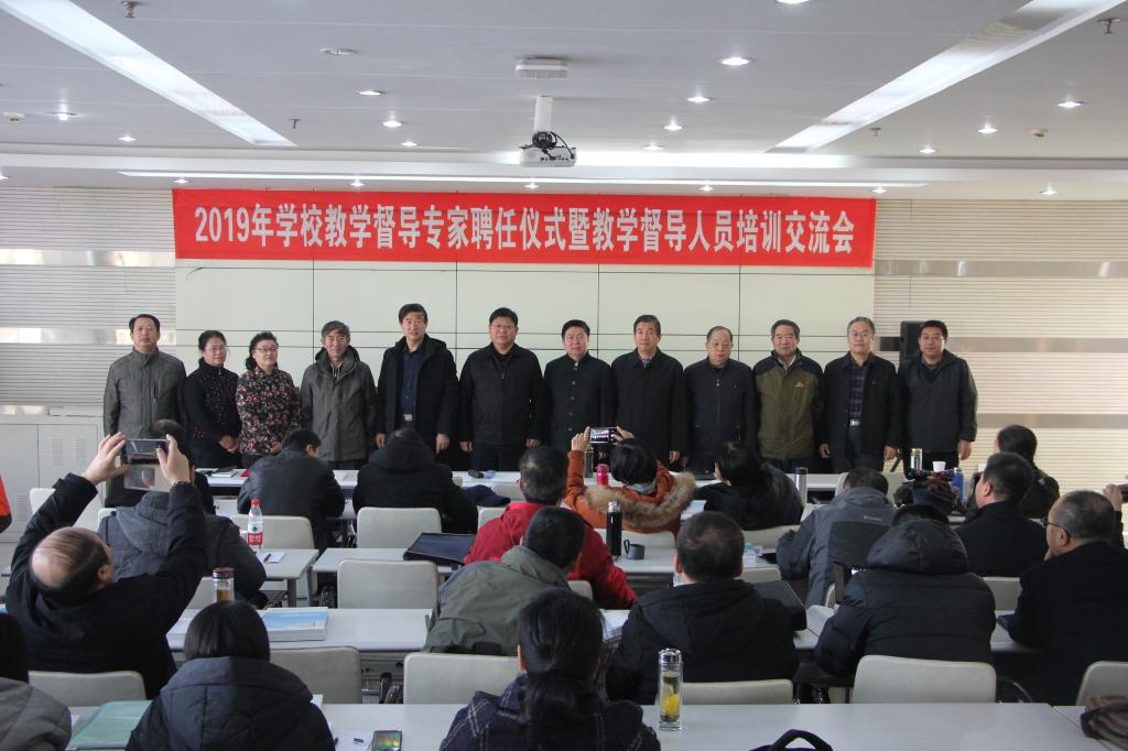 李佩国宣读了学校《关于2019年校级教学督导专家聘任的通知》。校领导为学校教学督导专家颁发了聘书。