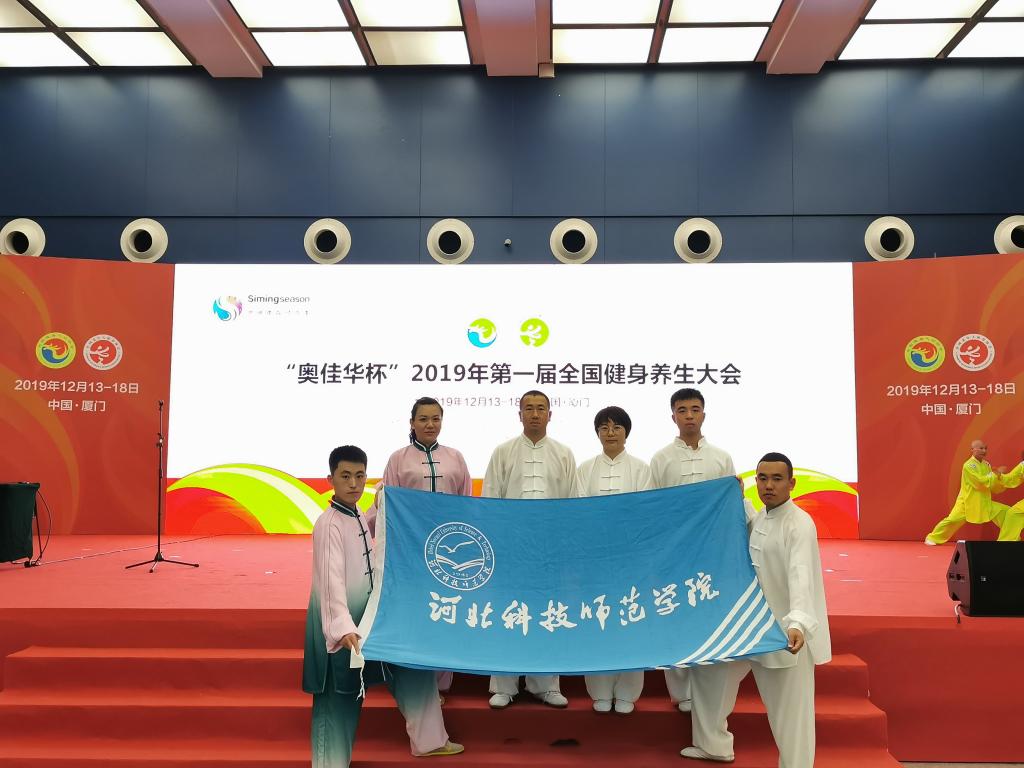 我校派出体育与健康学院6名师生分别参加了太极拳与健身气功两个项目的比赛。经过激烈的角逐,共获得个人一等奖4项,二等奖7项,集体一等奖2项的优异成绩。其中,教师许朋展在男子A组健身气功·八段锦获一等奖、男子组陈式传统太极拳获二等奖,教师张红在女子A组健身气功·五禽戏、女子杨式规定太极拳均获二等奖,教师李荣薇在女子A组健身气功·大舞、女子陈式传统太极拳均获二等奖;体育专业研究生杨洪发在男子A组健身气功·大舞、男子杨式规定太极拳均获一等奖;运动康复专业2017级学生贾浩阳在男子A健身气功.八段锦获一等奖、男子杨式传统太极拳获二等奖,运动康复专业2017级学生毕超群在男子A组健身气功·八段锦、男子杨式传统太极拳均获二等奖;同时,太极拳与健身气功集体项目均获一等奖。