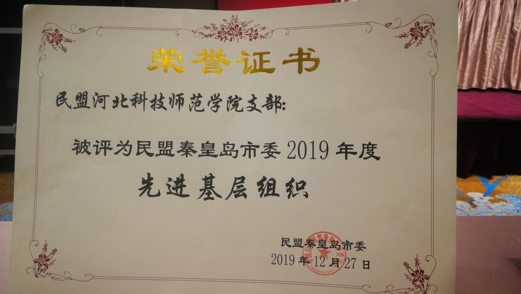民盟科师支部全体盟员齐心合力,通过支部组织建设筑基础,支部活动添活力,结合科师民盟支部实际,精准服务新农村建设,多措并举开展实践活动,在2019年获得秦皇岛市民盟市委颁发的《庆祝中华人民共和国成立70周年征文》三等奖和优秀组织奖;支部提案《发挥海洋资源优势建设沿海经济强市的建议》列入秦皇岛市和河北省两级政协集体提案,并作为口头发言提案在河北省政协大会上做口头发言。(编辑:孙艳敏 审核:彭妍)